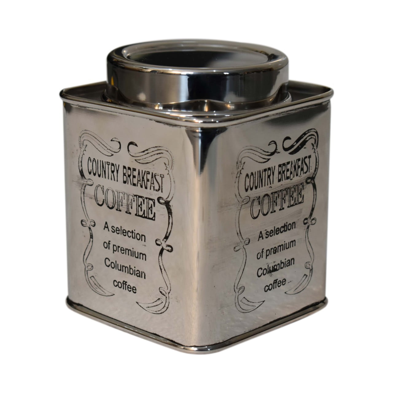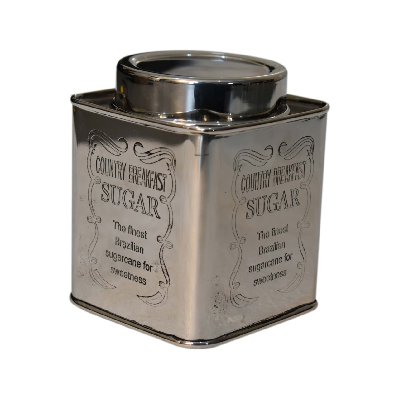 Keep your kitchen worktops neat and tidy with our tea, coffee, and sugar storage set. Each jar offers a sleek and simple design in a square shape and has a shiny chrome finish, perfect for everyday use. This product is handcrafted individually and as every piece is unique please do expect variations in finish, texture, size and should not be considered as a defect.