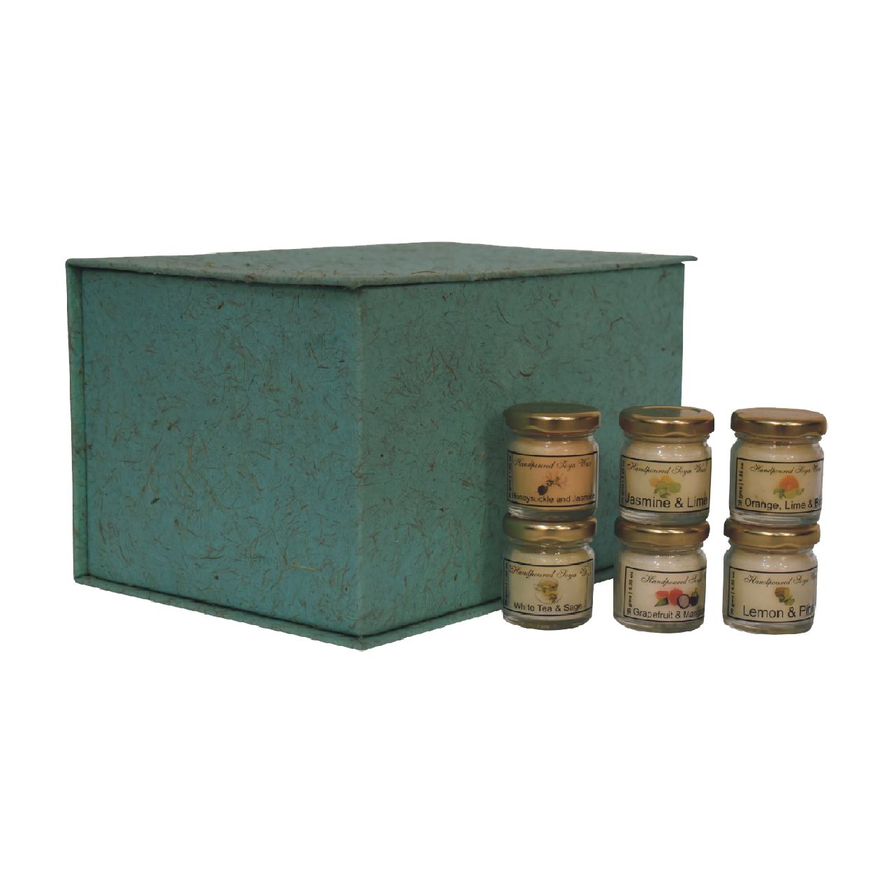 Set the mood with our mini candles, made to be used in any room of the home, especially suited for the living room, bedroom or bathroom. This cute set of 6 comes with a wonderful selection of Honeysuckle & Jasmine, Jasmine & Lime, Orange, Lime & Basil, White Tea & Sage, Grapefruit & Mangosteen and Lemon & Pine scented candles. Light and enjoy.